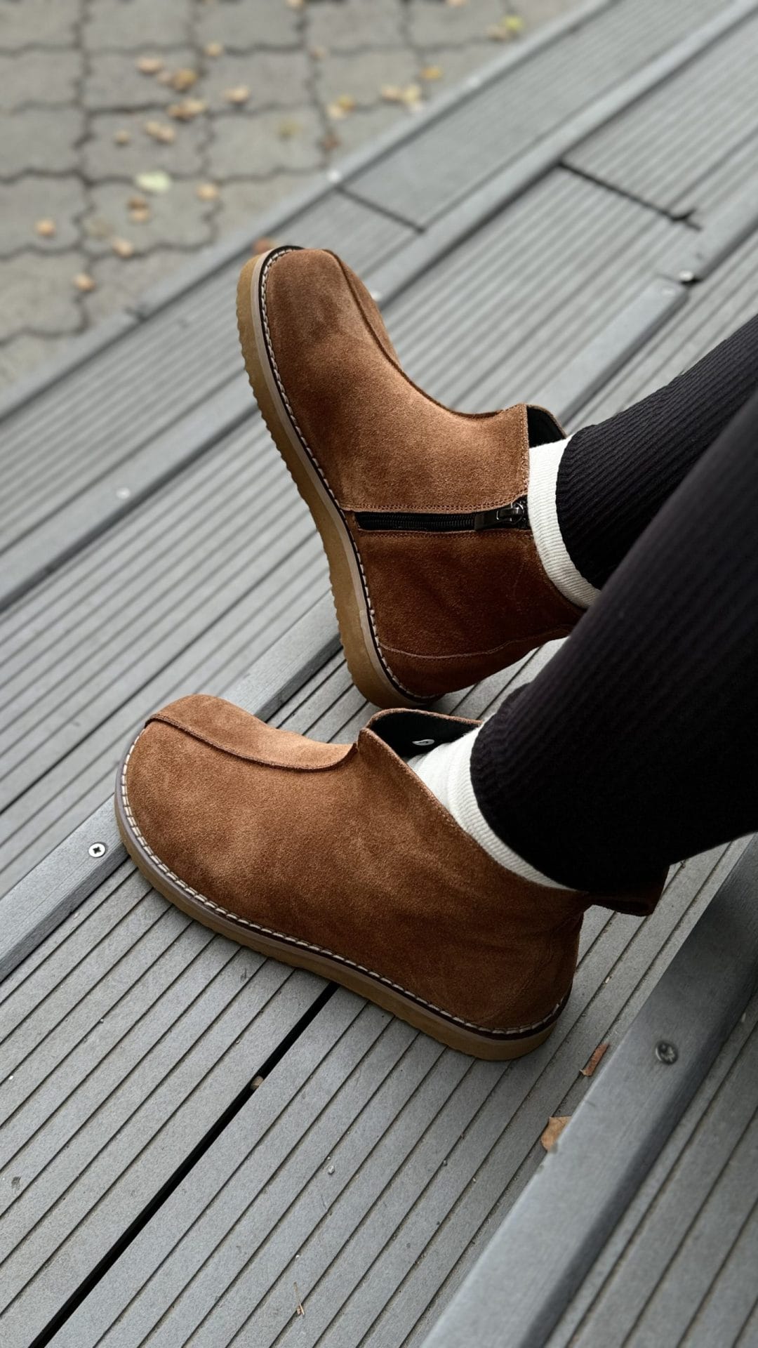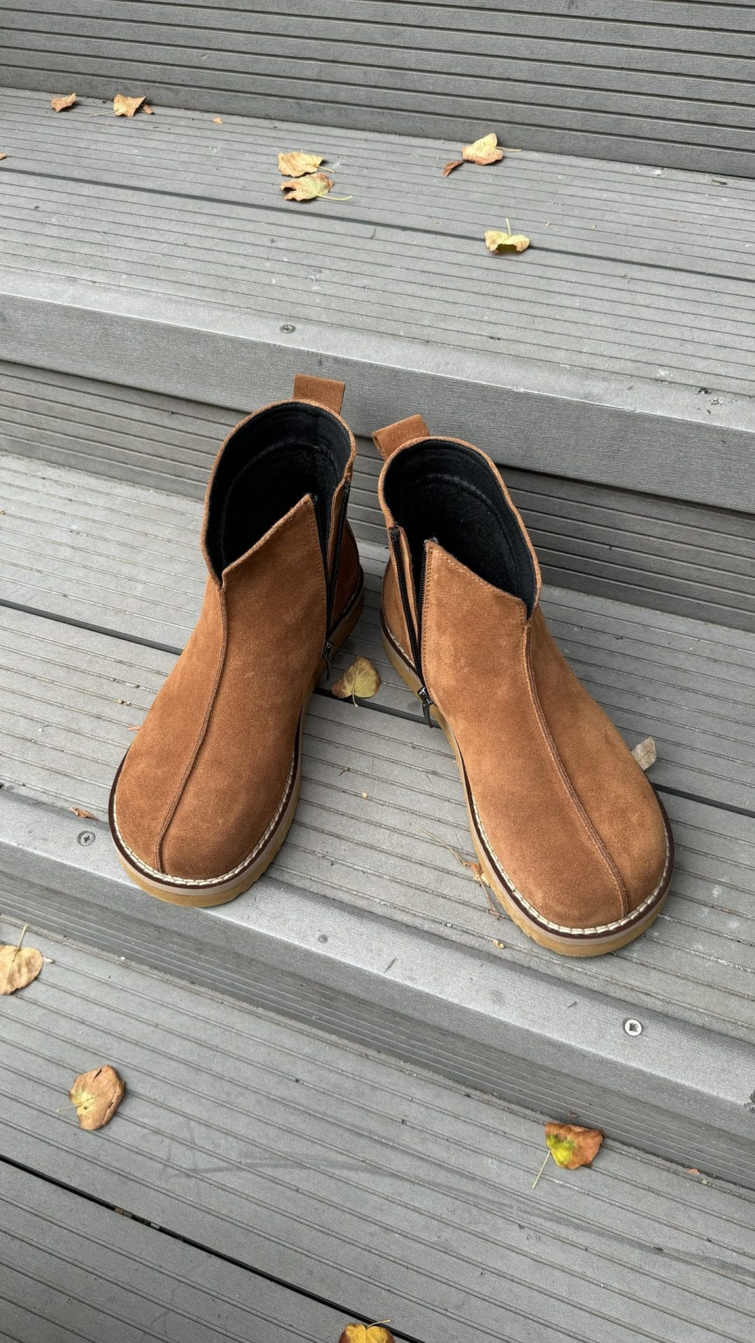 Anatomical boots made of genuine Italian suede with a cozy fleece lining. Built on a specialized anatomical last with a round toe, this model ensures a perfect fit while keeping your feet warm during cooler weather.
