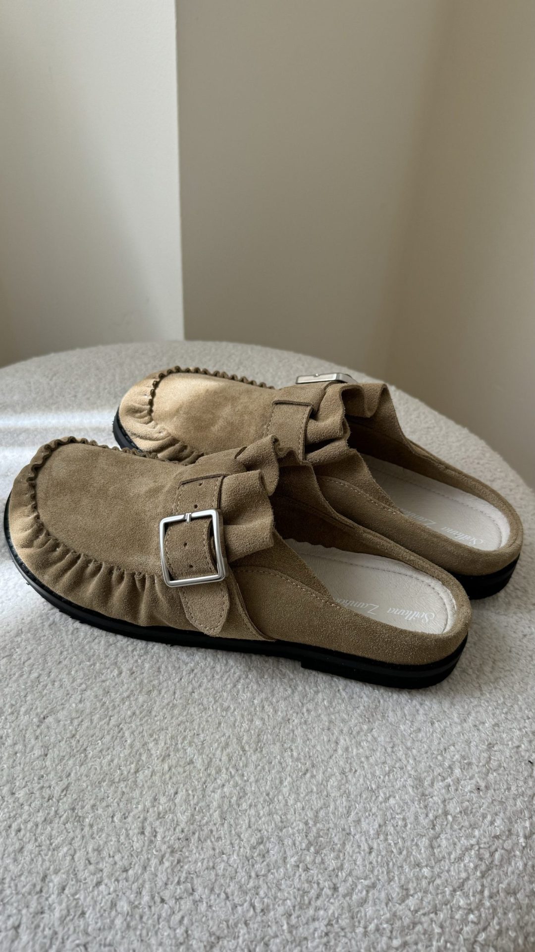 Anatomical clogs made of genuine Italian suede, on an anatomical last. Round toe.