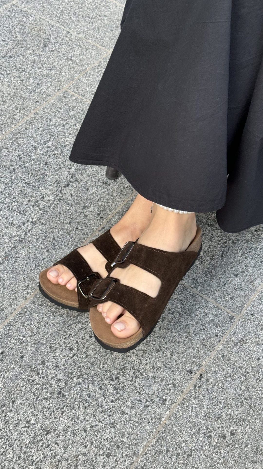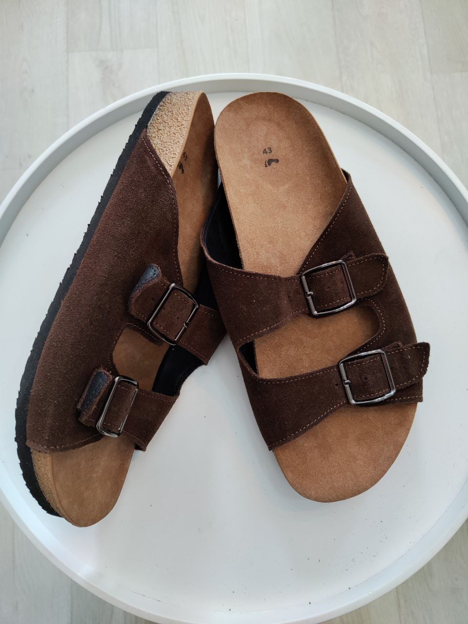 Anatomical slides made of genuine Italian suede on an eco-friendly cork sole. By combining natural cork with an anatomical last, this model provides unparalleled cushioning and foot support throughout the day.