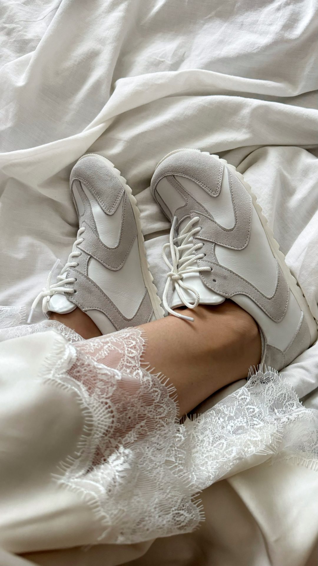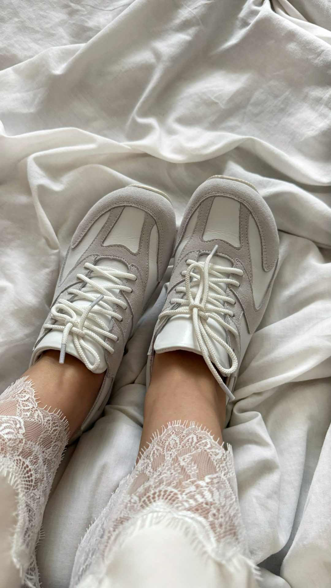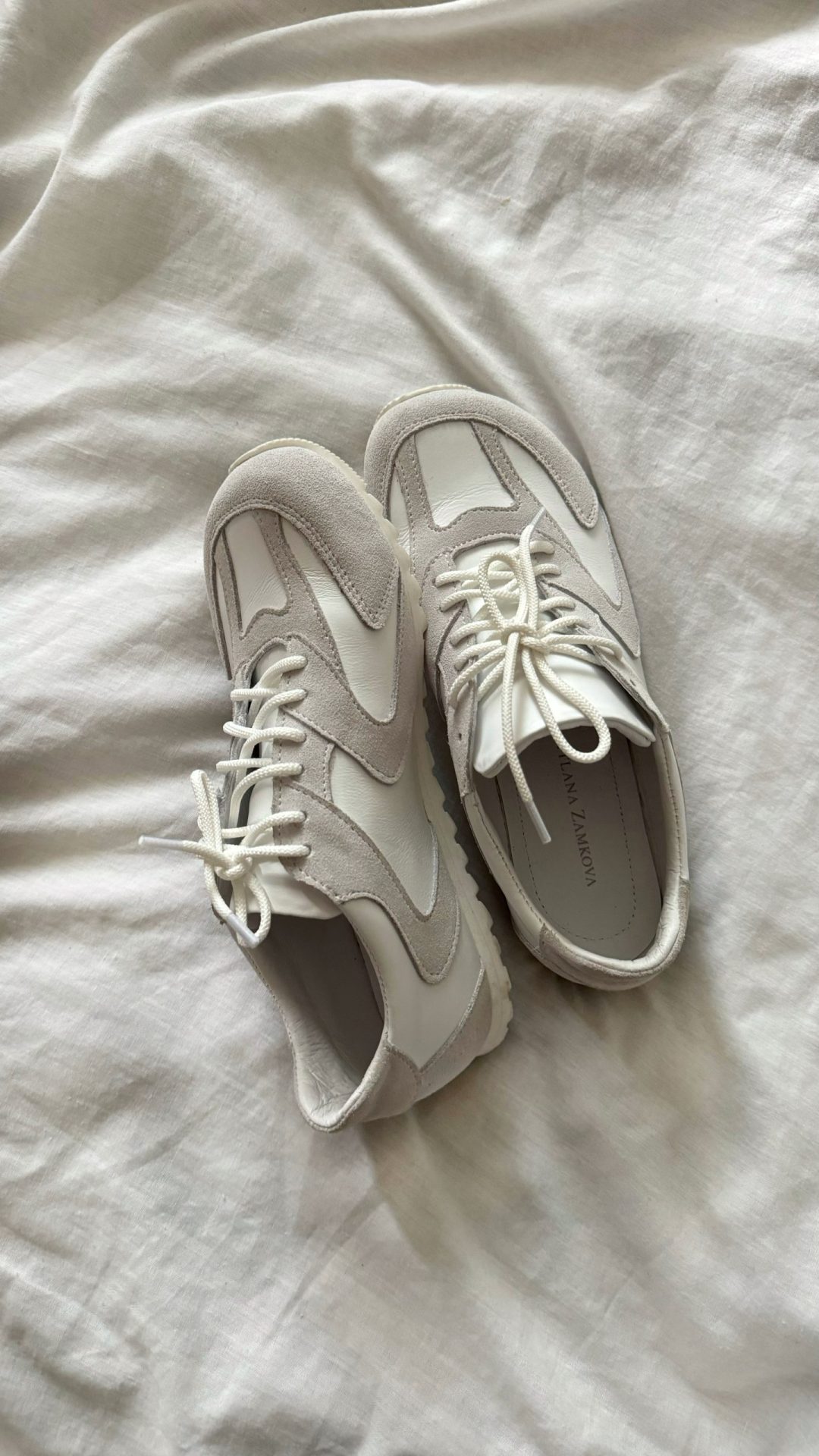 Anatomical sneakers made of genuine Italian suede and leather on a flexible sole. This model features a rounded toe and a thoughtful design, providing ideal foot support and all-day comfort.