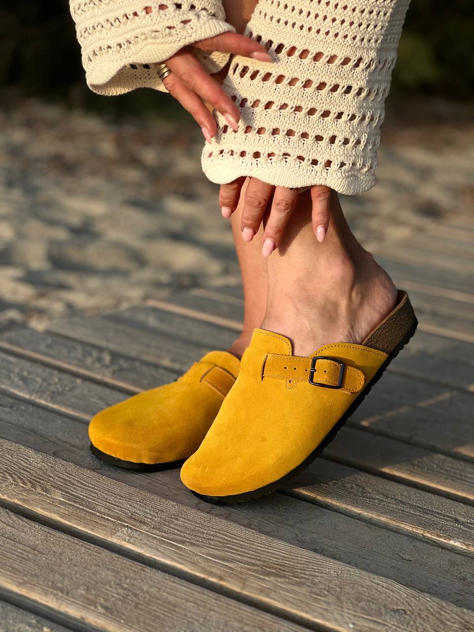 • natural cork sole with a comfortable lift (2–2.5 cm)